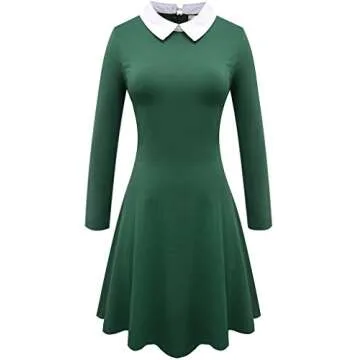 Show more Introducing the Aphratti Women's Long Sleeve Fall Dress – the perfect blend of vintage charm and contemporary style. Designed for the modern woman, this stunning A Line Fit and Flare Skater Goth Dress features a delightful Peter Pan collar, elevating its classy appeal. Crafted from a high-quality, soft cotton blend, the fabric is not only breathable but also lightweight, ensuring all-day comfort whether you're at work, enjoying a casual outing, or getting into the spirit for Halloween. Available in a sophisticated black that matches any occasion, this dress is the go-to choice for style and versatility.