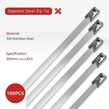 premium pack of 100 stainless steel zip ties designed to withstand