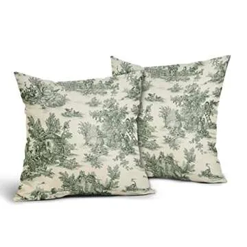 Show more Introducing the apport French Country Pillow Covers Set of 2 – a perfect blend of elegance and comfort that elevates your living space. Measuring a generous 18x18 inches (45cm x 45cm), these decorative pillowcases come without inserts, making them a versatile addition to your home decor. Crafted from a durable high-quality cotton and linen blend, these pillows are designed to be breathable, stylish, and odor-free. Their striking vintage toile design showcases a beautiful pattern printed on both sides, ensuring that they add a touch of luxury to any room, be it your living room, bedroom, office, or even a cozy chair.