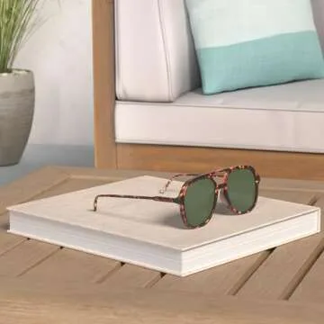 Appassal Retro Polarized Aviator Sunglasses Womens Men Vintage Double Bridge Square Sun Glasses AP3606, Tortoise Frame/Green Lens