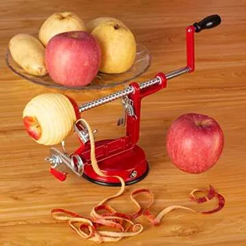 Apple Peeler Slicer Corer Versatile Apple Slicer and Corer with Stainless Steel Blades and Suction Base, Fruit Peeler Apple Peelers for Kitchen Durable Alloy Apple Peeler Red