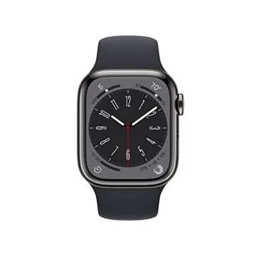 Show more Discover the future of wearable technology with the Apple Watch Series 8, the ultimate gadget for health enthusiasts and tech aficionados alike. This remarkable smartwatch not only boasts a stunning 41mm Always-On Retina display but also features a sleek Graphite Stainless Steel Case complemented by the stylish Midnight Sport Band. Perfectly designed for the modern individual, the Apple Watch Series 8 incorporates advanced sensors that help monitor your health, from blood oxygen levels to ECG readings, ensuring that you stay informed about your well-being.