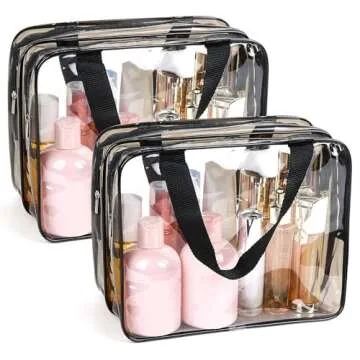 APREUTY Clear Makeup Bags Toiletry Bag, 2 pcs Large Clear Travel Bag for Toiletries, with 2 Compartments Zipper Closure Clear Travel Bags Airport Airline Compliant Bag for Portable Men Women (Black)