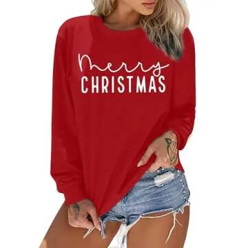 APRFLOWER Merry Christmas Sweatshirts Women Classic Merry Letter Print Sweatshirts Xmas Holiday Party Pullover Blouse