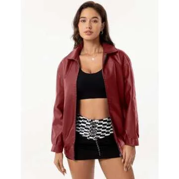 APRROOT Red Leather Jacket Women Oversized Burgundy Faux Bomber Jackets Zip Up Motorcycle Coats Fall Fashion Outfits 2024 with Pocket Wine Red S
