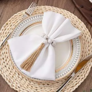 Transform your dining experience with the exquisite APTWOW Napkin Rings Set. This remarkable set of 6 white washed wooden napkin rings is designed for both beauty and functionality. Each ring measures approximately 6.1 inches in length and features an impressive arrangement of 10 wood beads. The delicate tassels extend to about 3.53 inches, perfectly complementing various sizes and styles of cloth napkins. Whether you're hosting a festive...