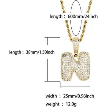 Show moreThis stunning Initial Letter Necklace from the renowned brand Apzzic Jewelry is the perfect blend of elegance and personalization. Crafted from high-quality Gold Plated material and adorned with sparkling CZ Diamonds, this necklace shines beautifully, making it an exquisite addition to any jewelry collection. The unique colorful gold rope chain measures 24 inches in length, and the Initial 'N' pendant is sized 1.1 inches x 0.74 inches, offering an impressive presence. Every inch of this necklace has been designed with care, ensuring it holds up to the test of time, making it a staple in both casual and formal wardrobes.