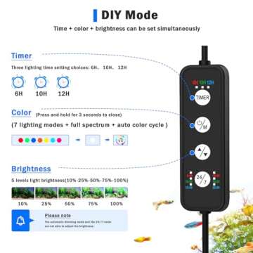 AQQA LED Aquarium Light, 24/7 Mode Clip on Fish Tank Light with Memory Function, DIY Mode Full Spectrum Aquarium Plant Light, Adjustable Timer/Brightness, IP68 Waterproof for 11-16 in Fish Tank 11W