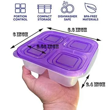 AQSXO 5 Pcs Bento Snack Food Containers, Divided Food Storage with Lids for Travel, Reusable Meal Prep Lunch Containers.