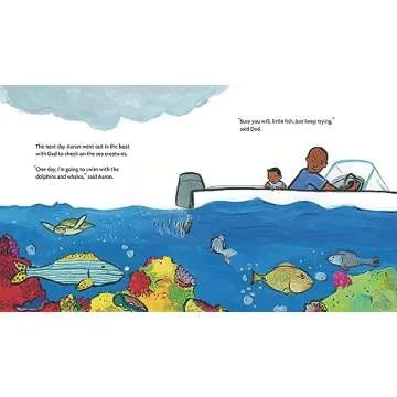 Show moreIntroducing a delightful adventure titled 'Little Aaron Goes to the Ocean', a heartwarming picture book that invites children to explore their fears and discover the wonders beneath the waves. This beautifully illustrated tale follows young Aaron, who feels alienated from his family's joyful ocean outings due to his fear of water. With each page turn, children will be captivated by the vibrant illustrations that bring to life the sea's enchanting secrets. Little Aaron learns that it's okay to be scared, and with the support of his loving family, he finds the courage to confront his fear of putting his head underwater and embracing new experiences.