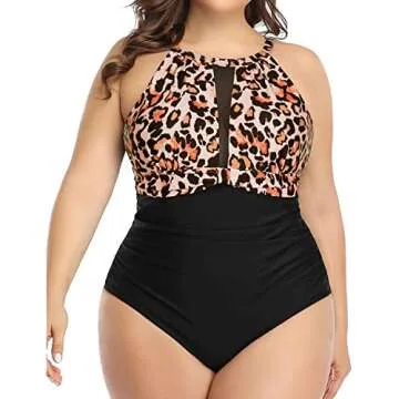 Aqua Eve Plus Size Women One Piece Swimsuit Tummy Control High Neck Swimwear Leopard 20W