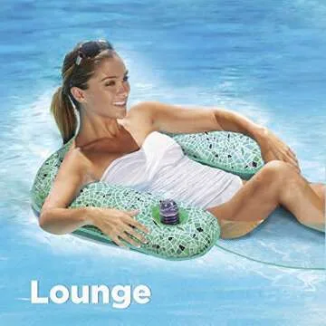Aqua Mosaic 3-in-1 Pool Chair Float – Inflatable Floating Pool Chair for Adults – Use as a Lounge, Chair, or Drifter – Green Mosaic