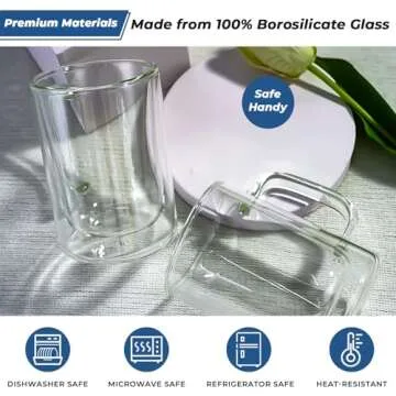 Show moreWelcome to the world of sophisticated sipping with the Aquach 12 oz Double Walled Glass Coffee Mugs with Handle. Crafted from 100% borosilicate glass, these mugs guarantee durability and elegance while being designed for daily use. With each sip, you’ll experience the ideal blend of functionality and style. The double-walled design not only keeps your beverages hot but also protects your fingers from heat, ensuring a comfortable hold every time. Each mug boasts a universal capacity of 12 oz, making them perfect for lattes, cappuccinos, teas, or any beverage you desire.