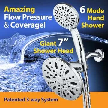 AquaDance 7" Premium High Pressure 3-Way Rainfall Combo Combines The Best of Both Worlds-Enjoy Luxurious Rain Showerhead and 6-Setting Hand Held Shower Separately or Together, Chrome