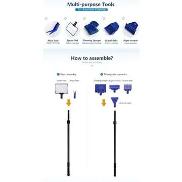 AquaticHI 5 in 1 Aquarium/Fish Tank Cleaning Kit/Tool, Algae Scraper, Fish Net, Sponge, Plant Fork, Gravel Rake, Length Adjustable from 21 inches to 31 inches (Extendable)