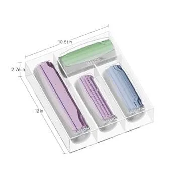 Aquiver Acrylic Bags Storage Organizer - Baggie Bags Drawer Organizer & Plastic Food Storage Bags Holder - Compatible with Gallon, Quart, Sandwich, Snap, Freezer, Slider Bags (Clear)