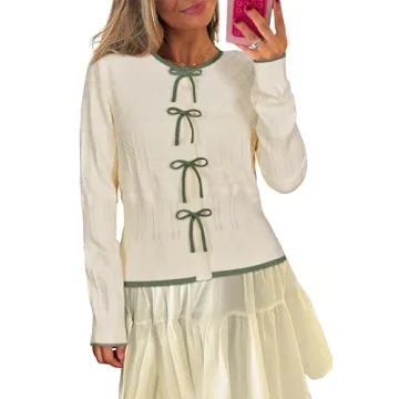 Show more If you're looking for the perfect blend of comfort and style, look no further than the exquisite Ultra-Soft Bowknot Cardigan from our exclusive collection. Crafted with a soft, stretchy, and skin-friendly fabric, this cardigan masterfully ensures warmth without any unwanted bulk or heaviness—ideal for bridging the gap between winter and spring. Its lightweight and breathable design make it a go-to piece for transitioning seasons.