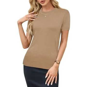 Arach&Cloz Womens Summer Tops 2024 Short Sleeve Pullover Sweaters Crew Neck Business Casual Tops Trendy A-Camel02