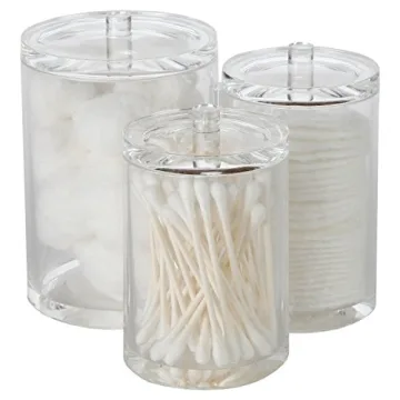 Show more Effortlessly streamline your bathroom organization with the ARAD Cotton Ball, Swab, and Q-tip Storage Set. Crafted from lightweight acrylic plastic, this 1-Piece 3-Compartment Clear Bathroom Organizer is designed to withstand the rigors of everyday use while maintaining an elegant aesthetic. Unlike heavier ceramic or glass containers, this organizer won’t shatter or chip if accidentally dropped, making it the ideal choice for busy bathrooms.