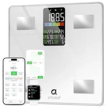 Arboleaf Smart Scale with BMI, Body Fat, Muscle Mass, Digital Bathroom Scale for Body Weight, 14 Body Composition Metrics, Large LED Display, Accurate Weighing Machine, App Sync, 500lbs, 10.2"