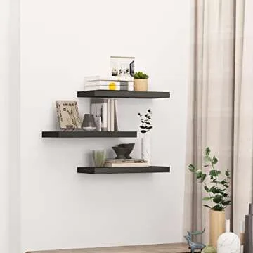 Show moreIntroducing the Arceisle Hanging Shelves, your ultimate solution for stylish and functional wall storage. Measuring 24 inches in length, these black floating shelves reimagine your space by blending chic aesthetics with maximum utility. Designed with a 50lbs load capacity in mind, each shelf is crafted from high-quality MDF board, boasting a thickness of up to 1.5 inches, combined with a robust steel bracket of 1.0mm thickness. These shelves are perfect for displaying your favorite books, photos, or decorative items while providing a contemporary touch to any room in your home.