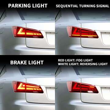 Archaic LED Tail Lights Assembly Fit for LEXUS IS250/IS300/IS350/ISF 2006-2012, Sequential Turning Signal Tail Lamps for LEXUS IS series, Plug & Play Dynamic Rear Lights, Red Lens, Pair(Red)