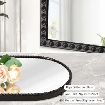 Arched Mirror for Bathroom, Black Arch Wall Mirror, Vintage Metal Beaded Frame Decorative Mirror for Accent Living Room Vanity Bedroom Entryway Large 26"x18"