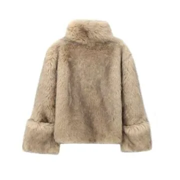 Archicolor Minimalist Faux Fur Coat Fashion Blogger Retro Pullover Coat Women For Winter (US, Alpha, Medium, Regular, Regular, Khaki)