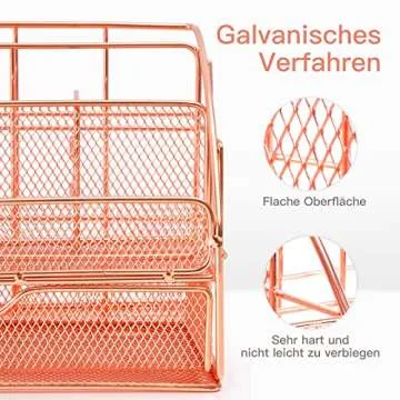 Constructed from high-quality metal with a durable, rust-resistant coating, the ARCOBIS Desk Organiser is built to last. The rounded edges not only enhance its refined look but also ensure safety in your workspace. This stylish combination of wire mesh and rose gold not only organizes your items but also makes a **fashion statement** on your desk.