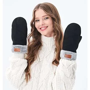 Arctic Paw Warm Black Faux Fur Running Mittens Women Winter Glove Mittens, Black