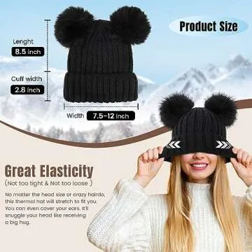 Arctic Paw Winter Hats for Women Black Beanie Cable Knit Beanie Faux Fur Pompom Beanie Hat Black Ball