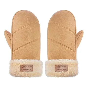 Arctic Paw Women's Mittens - Khaki Faux Leather Insulated Winter Wear for Women and Teens