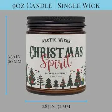 Arctic Wicks Scented Coconut Beeswax Candles | Coconut Beeswax Non Toxic Candle 9oz Amber | Farmhouse Candles Non-Toxic Clean Burn 100% USDA Certified Biobased (Christmas Spirit)