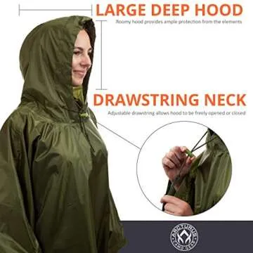 Arcturus Lightweight Ripstop Nylon Poncho with Adjustable Hood (Olive)