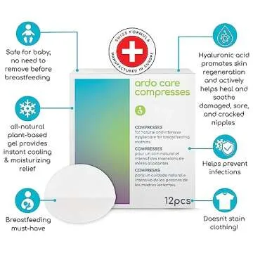 Ardo Care Compresses (12pcs), Vegan, with Hyaluronic Acid, Soothing & Cooling Breast Gel Pads for Intensive Care of Sore, Painful Breastfeeding Nipples, Made in Europe, Individually Wrapped & Hygienic
