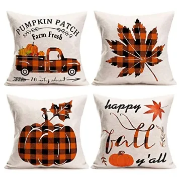 Aremetop 4 Pack Farm Fresh Pumpkin Patch Pillow Covers 18x18