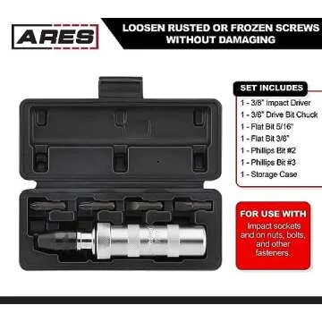 ARES 70006-3/8-Inch Drive Manual Reversible Impact Driver - Flathead 5/16-Inch, 3/8-Inch, and Phillips 2, 3 Bits Cover Most Common Applications - Disengage Rusted Fasteners or Frozen Bolts