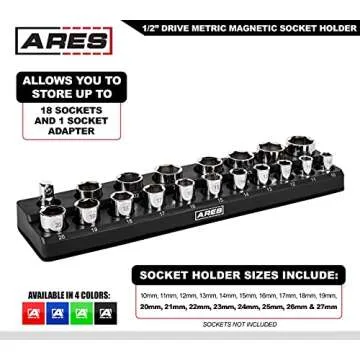 ARES 70237-19-Piece 1/2-Inch Metric Magnetic Socket Organizer - Holds 18 Sockets and 1 Socket Adapter - Keeps Your Tool Box Organized