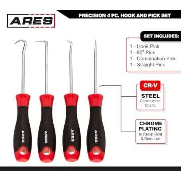 ARES 70256 Precision Hook and Pick Set - 4-Piece Set with Chrome Vanadium Steel Shafts for Easy Hose and Gasket Removal