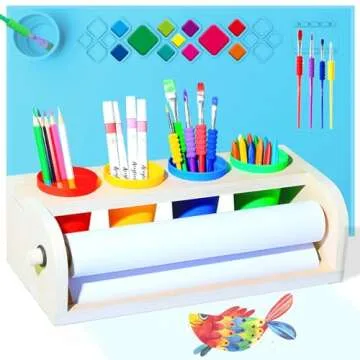 Arfetigo Kids Art Easel with Paper Roll Dispenser - Desktop Easel for Kids - Premium Set (Blue)