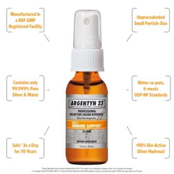 Argentyn 23 Professional Bio-Active Silver Hydrosol for Immune Support, Colloidal Silver, 23ppm, 1oz (29mL) Fine Mist Spray