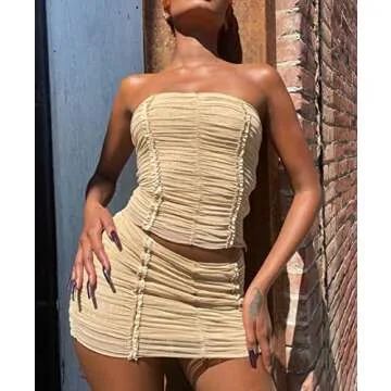 Argeousgor Two Piece Outfits for Women Hollow Out Skirt Sets Slim Fit Crop Tops Bodycon Mini Skirt Y2k Summer Streetwear