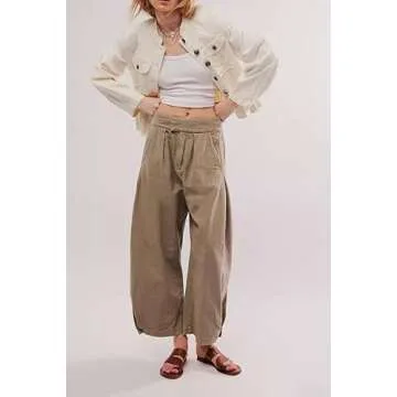 Argeousgor Womens Baggy Barrel Horseshoe Pants Y2k Mid Waist Wide Leg Loose Boyfriend Pants Straight Leg Linen Sweatpants