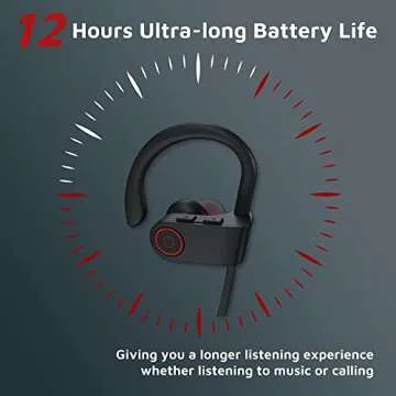 Argmao U9 Bluetoth Headphones, 12 Hrs Playtime Wireless Earbuds IPX7 Waterproof Earphones with Mic HD Stereo Sweatproof in-Ear Earbuds for Sports Gym Running Workout Noise Cancelling Headsets Black