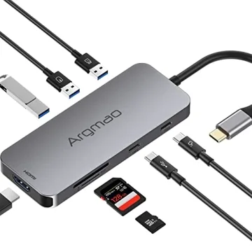 Argmao USB C Hub, 8-in-1 Dongle, USB C to USB C Data Transfer, USB-C PD3.0, 4K@30Hz HDMI, 3 USB 3.0, SD/TF Card Reader Adapter, Compatible with MacBook Air Pro, Chromebook and Other Type C Laptops