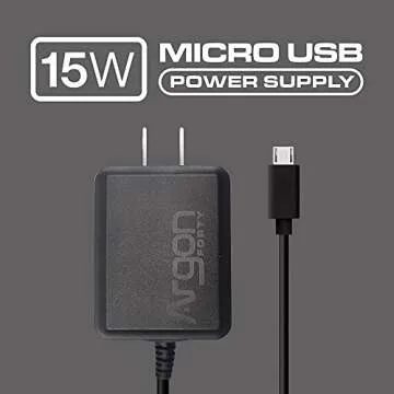 Argon Micro USB Cable Power Supply 5.25 Volts 3 Amps for Raspberry Pi 3 and Zero Boards | UL Listed | 3.3 Feet Long Cable with Micro USB Connector | Micro USB Cable and Wall Charger