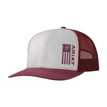 ARIAT Men's Structured Cap Flag Logo, Burgundy/White