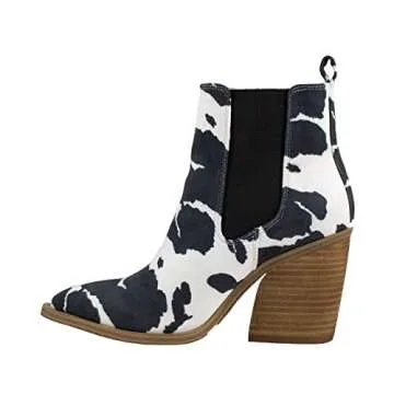 ARIDER GIRL Dako Women's Western Ankle Boots (Cow White Black,5.5)