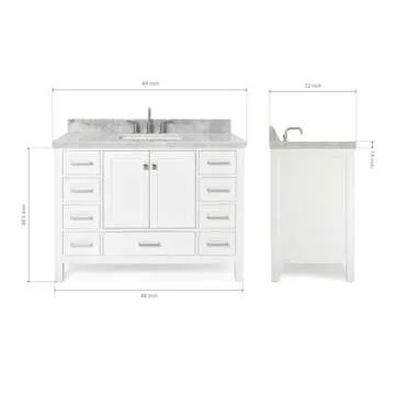 ARIEL Cambridge 49" White Bathroom Vanity with Sink, 1.5" Edge Italian Carrara Marble Countertop & Backsplash, Rectangular Sink, 2 Soft Closing Doors, 9 Full Extension Dovetail Drawers, Brushed Nickel