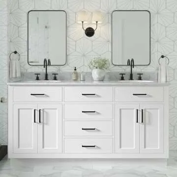 In the market of bathroom vanities, the ARIEL Double Vanity stands out not just for its luxurious features but for the quality materials used in its construction. While many competitors may offer similar dimensions, few provide the robust dovetail drawer construction and soft-closing mechanisms that ensure both longevity and user satisfaction. Additionally, the stunning Carrara White Marble is a highlight that many alternative brands compromise on, allowing ARIEL to deliver unparalleled value.